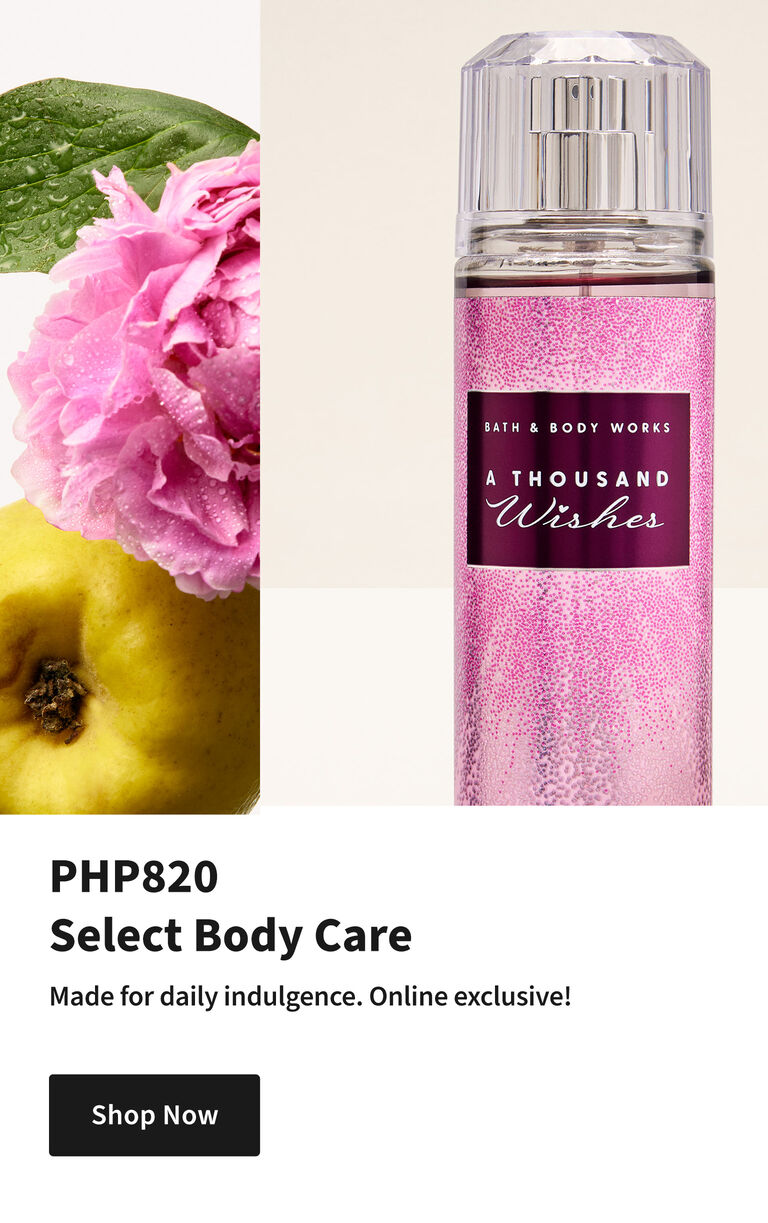 Bath and Body Works is your go-to place for gifts & goodies that surprise & delight. From fresh fragrances to soothing skin care, we make finding your perfect something special a happy-memory-making experience. Oh! And while you're browsing, shop our latest & greatest selection of lotions, soaps and candles!